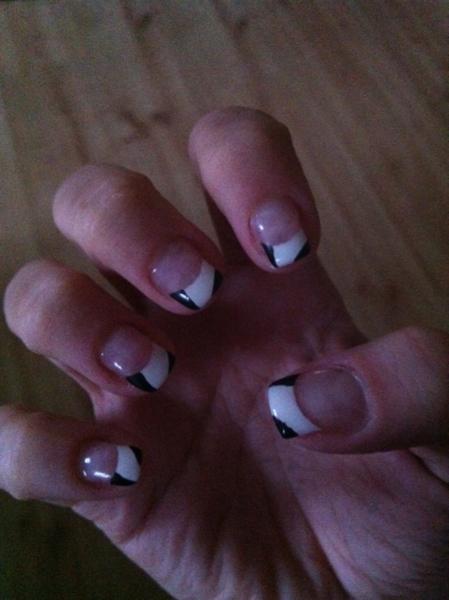 cc la miss ! j m bien l idee du noir blanc argent comme çà ! t aurais pu faire ton one stroke un peu moins timide lol bon les formes c deja mieux ... mais travaille les encore c est pas net net niveau carré ... tu vois ce que je veux dire ? et ca a l airr un chouilla epais ta pose ... sinon jolie pose tu progress !