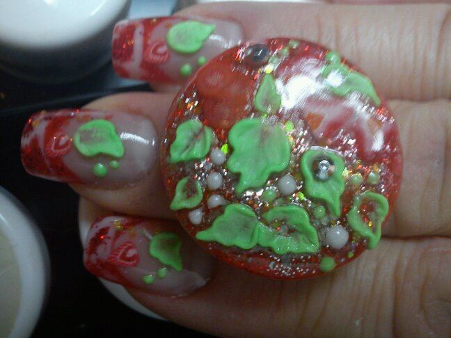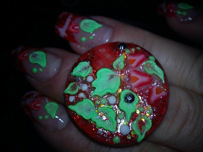 merci les filles j ai enlevé les 3d de mes ongles je pense que c est la couleur trop verte qui casse tout, du coup je vais essayer de mettre une toute petite feuille en peinture acry discrète dans la couleur a coté de la fraise.. :)...ou rien lol j vais tester .... :)