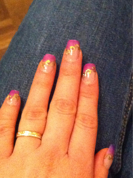 Cc. Voici ma pose de ce moment. Réalisée lundi avec gel rydnails caméléon pink/purple.