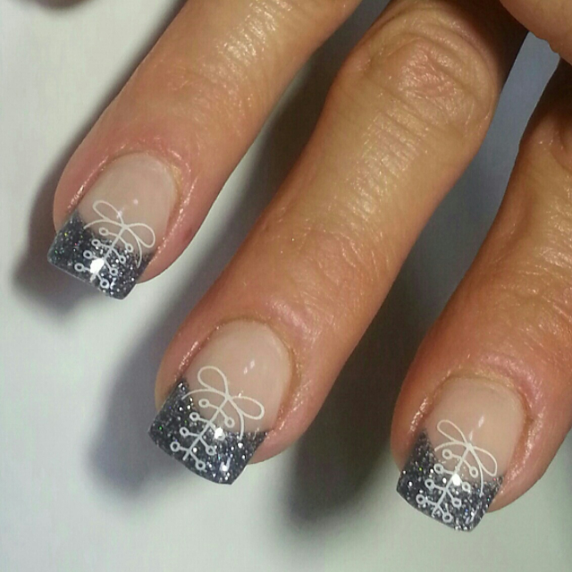 Voici ma pose actuelle, french noire pailletée pour les fêtes