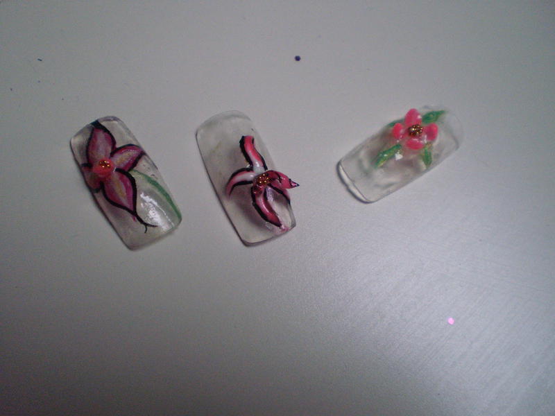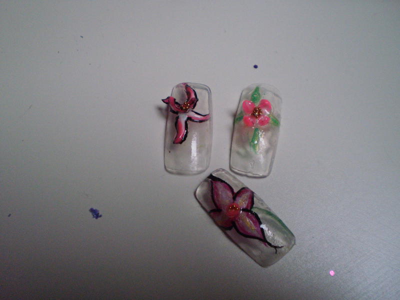 J'ai achete le gel monophase, un spot, une pince pour attraper les strasses, 3 gel french de couleurs: du blanc pearl, du mauve foncé, et du beige rose. Puis un coussin, un glitter mauve, des strasses en coeurs, en étoile, en fleurs, un pinceau avec des longs poil hyper fin pour le nail art et je crois que c'est tous.... Heummmm c'est déjà pas mal...ancing_tongue: