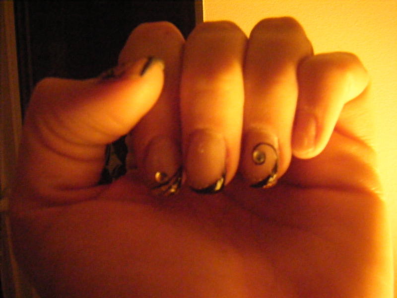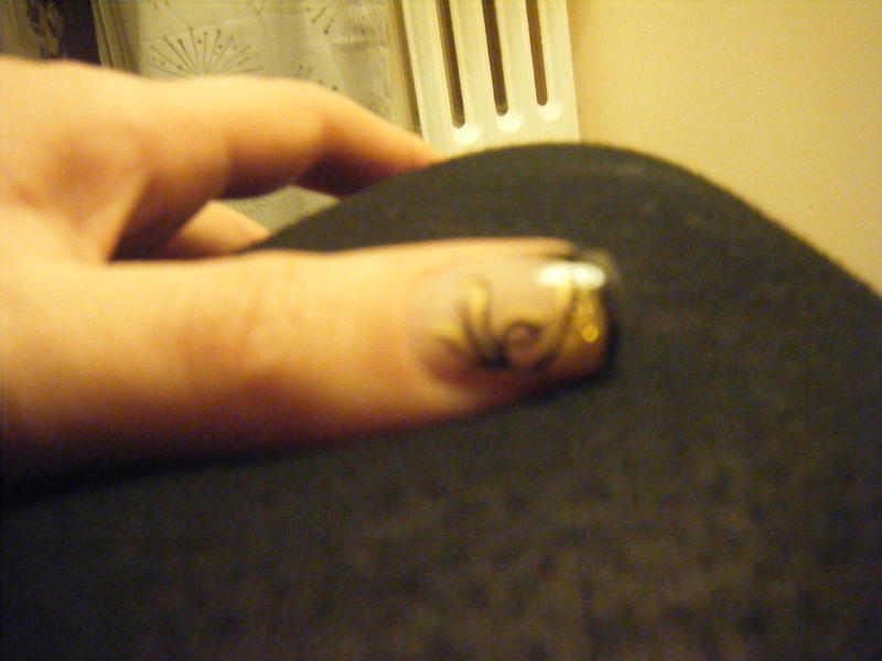 j'ai fais cette pose aujourd'hui et j'aimerais avoir vos avis car c'est la premiere fois que je teste une french de couleur (noir reflet or) et je suis loin d'etre pro, je fais des poses en temps que loisirs depuis le mois de mai..., j'avais ouvert un post mais une seule reponse (merci mimi ... :1-smile:) alors si vous pouviez me donner le votre...