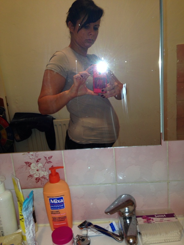 Je met une photo de moi juste avant de tomber enceinte comme sa on verra ma tête lol jss assise mais on voi que jai pas un gros ventre a la base lol