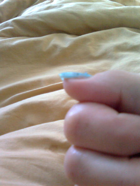 bon, essai envoi photo d'1 ongle, ... j'ose même pas dire en combien de temps je l'ai fait.. alors là, pour la pose complète!! j'ose même pas penser combien de temps je devrai y consacrer!! :rain:j'ai les ongles naturels fort "plats" et de travers ... au passage, où trouver des tips "plats"??suite après ..