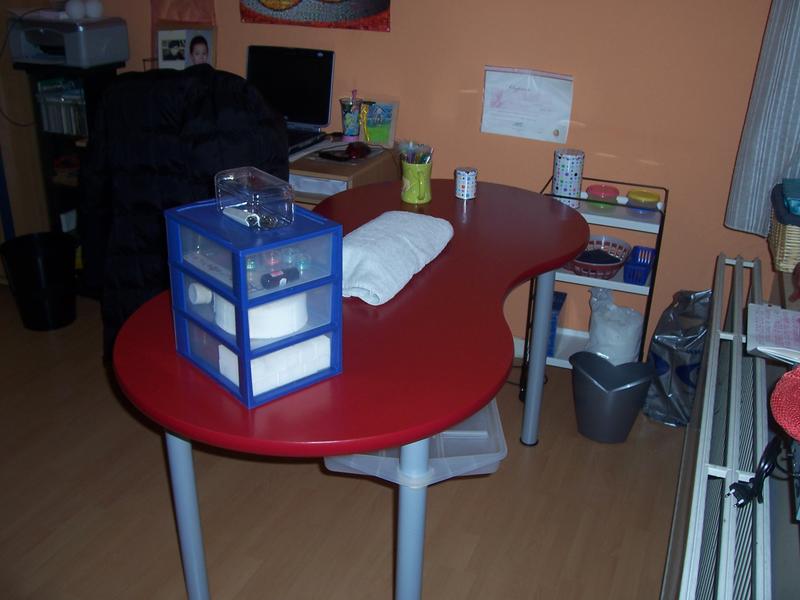 moi aussi je l'ai et je suis super contente et en plus j'ai pas pris les pieds de table mais deux caissons de bureaux sur roulette de couleur gris. Génial pour ranger le matériel