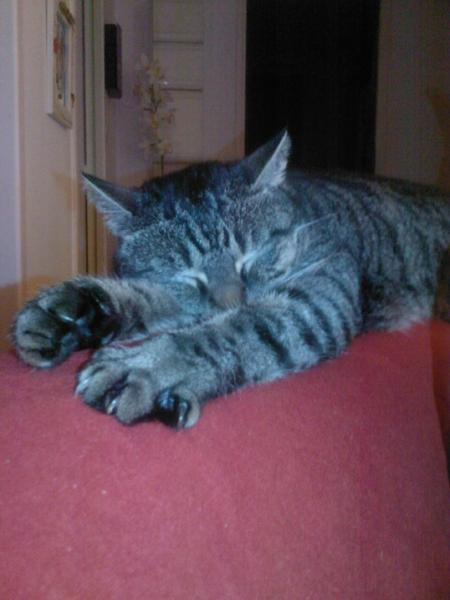 hihihi, il a pesque la meme tete que le mien quand il a les yeux fermer, gete un coup d oeil a mon post dans animaux de ce matin , tu verra la resemblance !!! mais juste la tete et les yeux fermer mdr