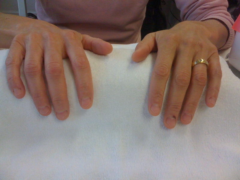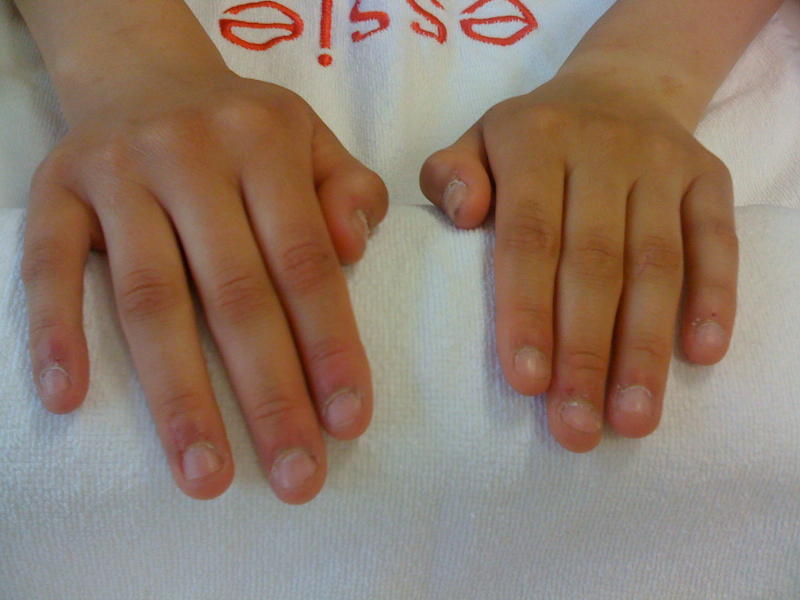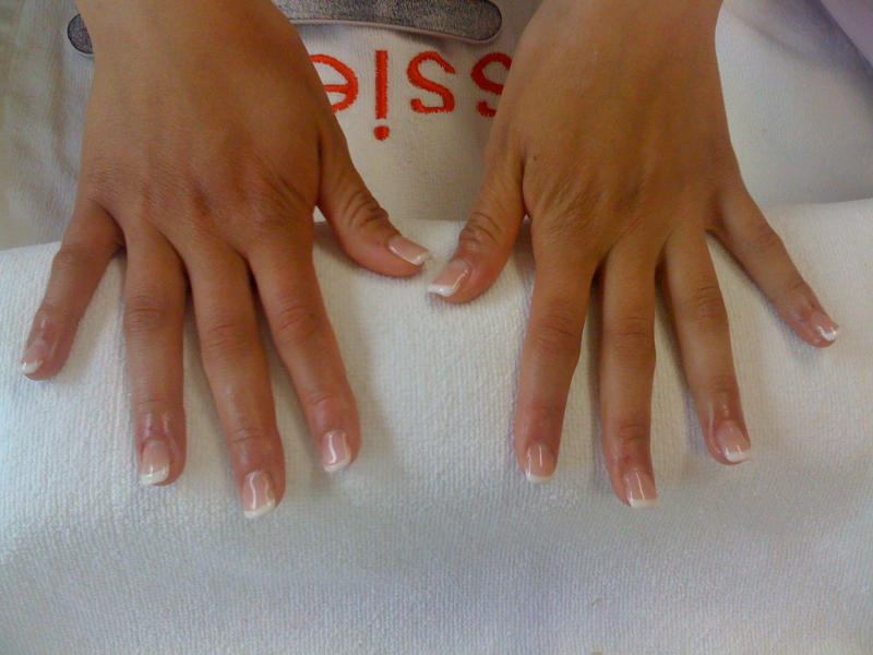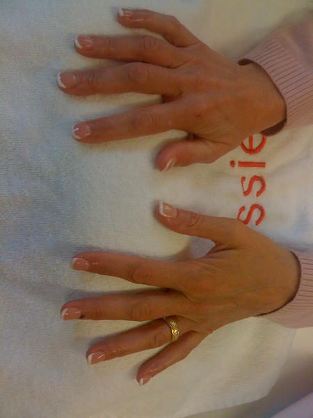1 modèle chablon, qui avait aussi des ongles rongés. J'ai du prolonger la plaque sur la peau pour mettre les chablons ensuite.